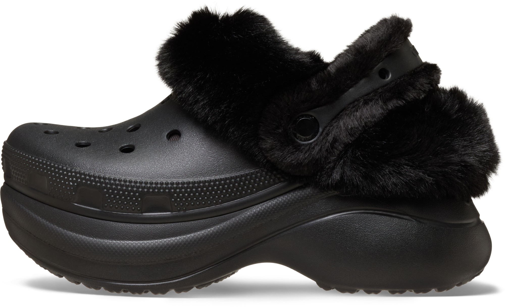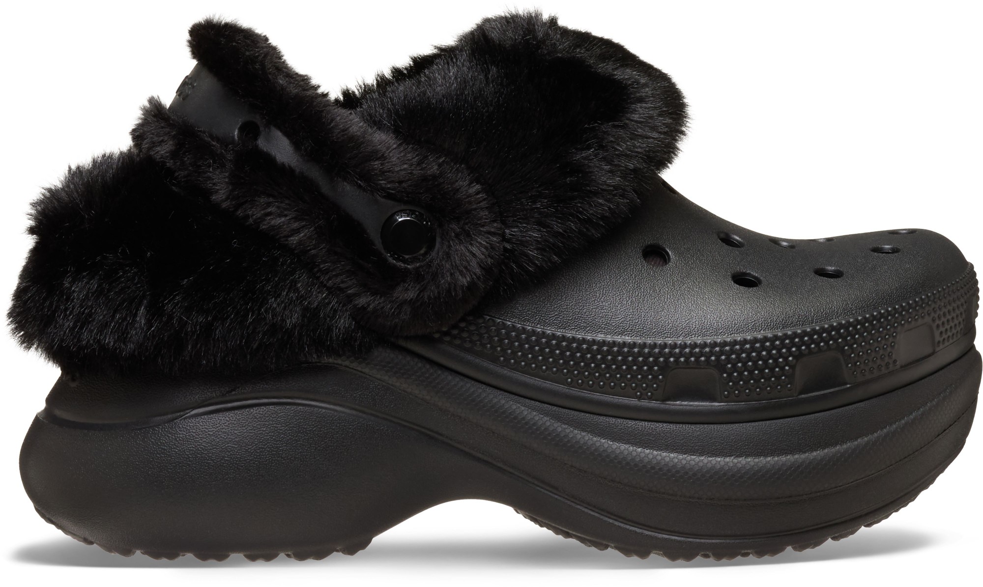 Get extra height, confidence, and cozy style with the Bae Lined clog. A luxurious faux-fur collar and interior, together with a soft fur-lined backstrap, provide exceptional comfort and a chic look. Like the original Bae, this version features a bold, elevated outsole with space for your favorite Jibbitz™ charms, but the closed ventilation holes add extra warmth and wearability. The fuzzy backstrap also holds Jibbitz™ charms – express your style confidently with the Bae Lined“clog!