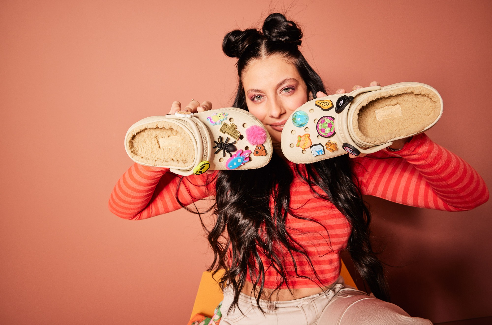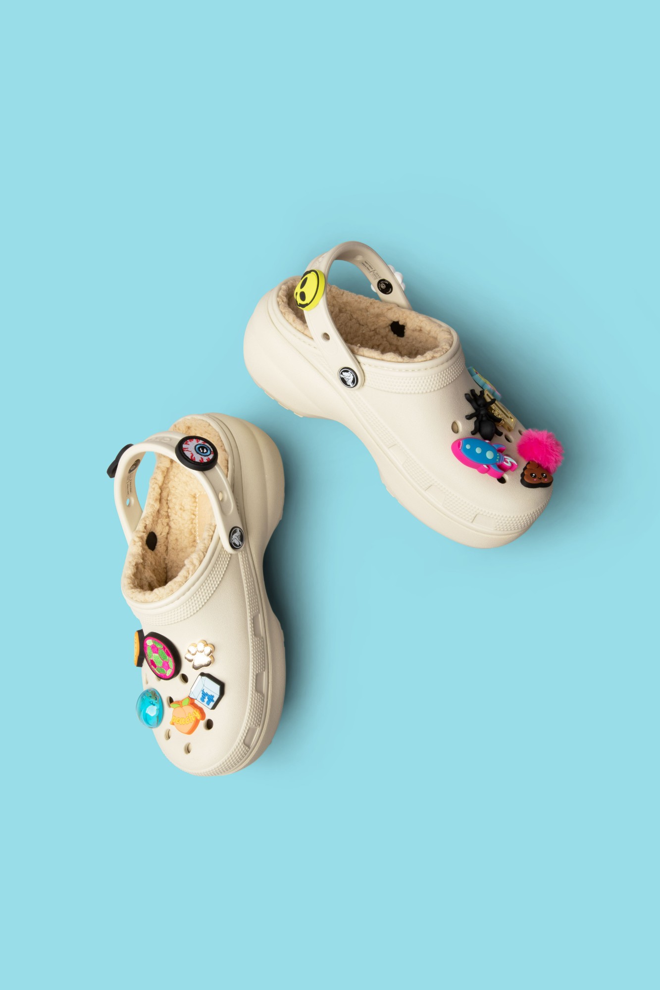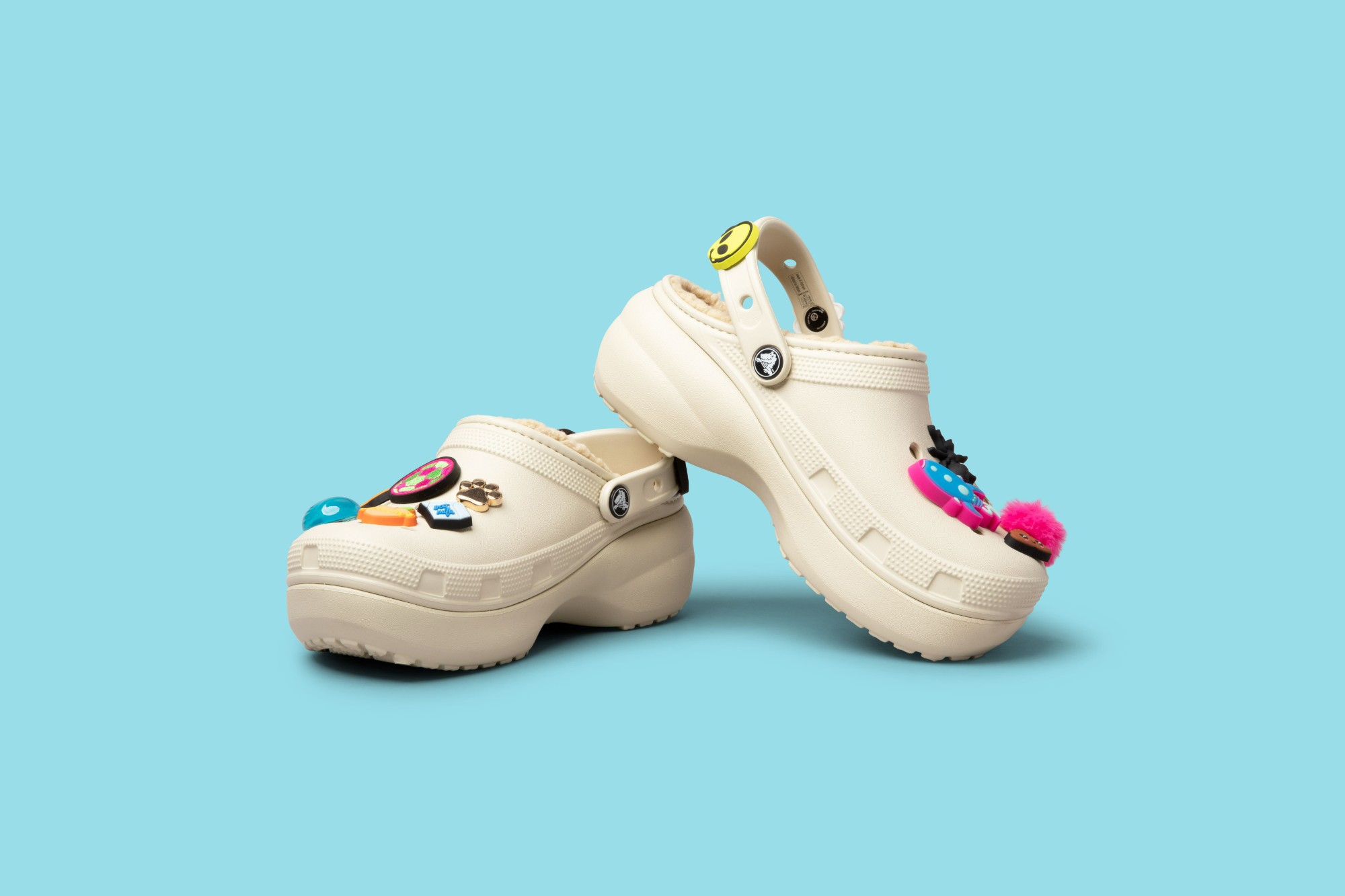 • Daugiaspalviai aksesuarai Jibbitz, leidžiantys kurti savo unikalų stilių