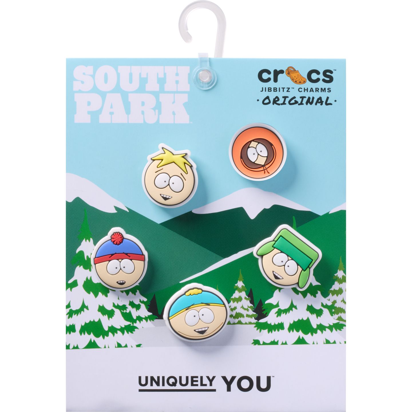 Smiling faces everywhere – this exclusive 5-pack of Jibbitz™ charms features the beloved South Park characters. Included are Stan, Kyle, Cartman, Kenny, and of course, Butters!
