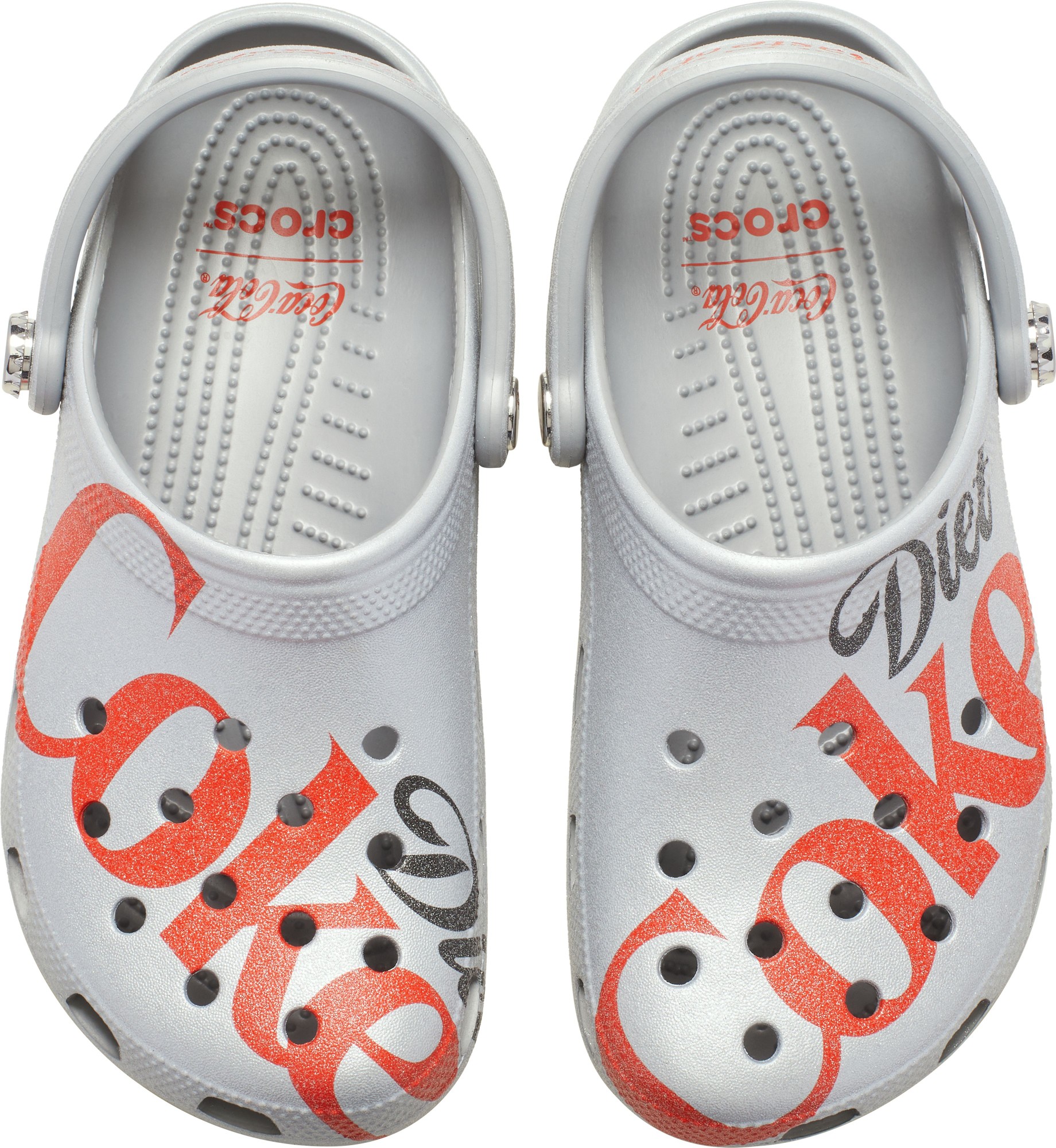 Phone. Keys. Clogs. You can't leave the house without the essentials including a crispy Diet Coke and your matching Diet Coke Classic Clogs. Both will keep you going from first sip to last step of the day. This fizzy pair features an all over glitter motif and "just for the taste of it." printed on the heel strap. And with plenty of room for personalization, you can pair your pair your own with Jibbitz™ charms.