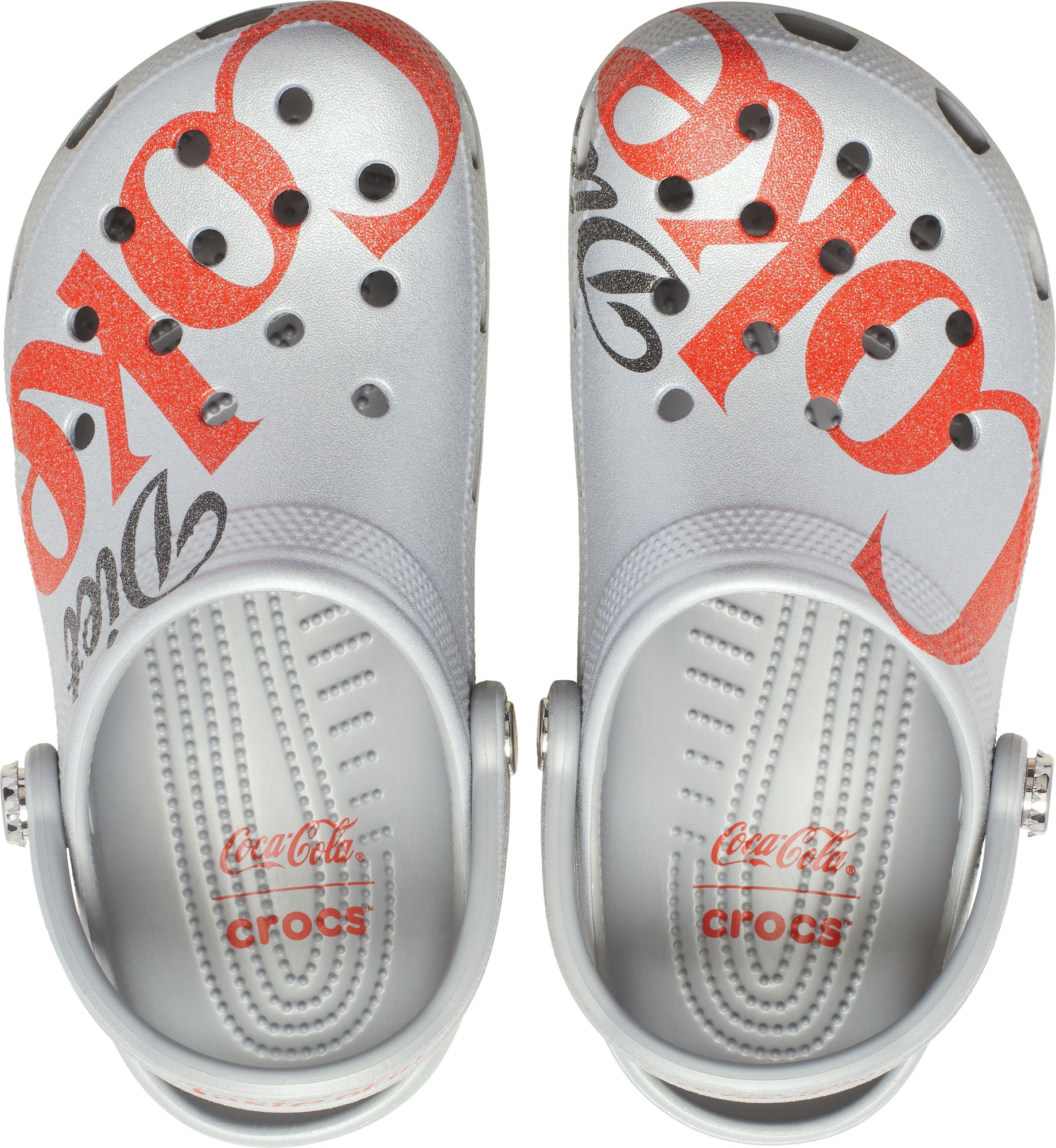 Telefonas. Raktai. Klumpės. Iš namų neišeisite be svarbiausių dalykų – traškios „Diet Coke“ ir derančių „Diet Coke Classic Clog“ klumpių. Abu lydės jus nuo pirmo gurkšnio iki paskutinio dienos žingsnio. Ši putojanti pora pasižymi visą paviršių dengiančiu blizgučių motyvu ir užrašu „just for the taste of it!“, atspausdintu ant kulno dirželio. Be to, turėdamos daug vietos personalizavimui, klumpės leidžia jas papuošti „Jibbitz™“ aksesuarais.