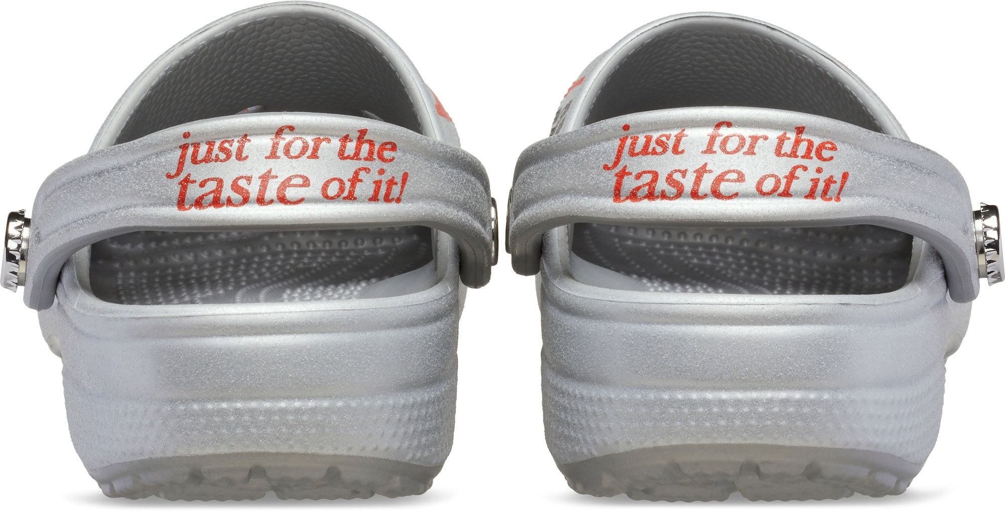• "just for the taste of it!" printed on heel strap;