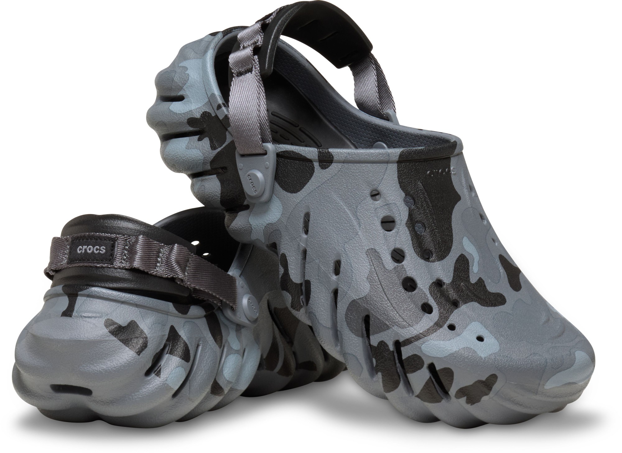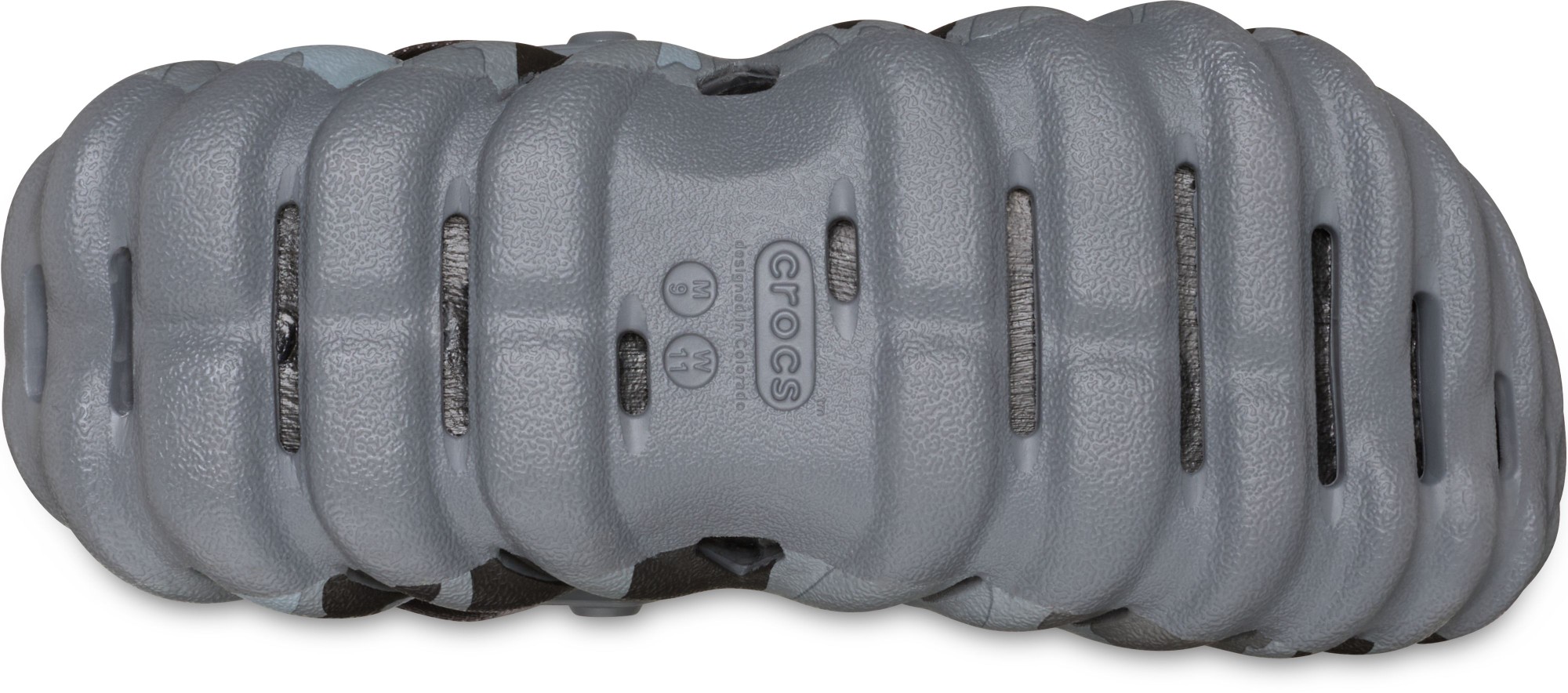 „Echo“ kolekcija skirta tiems, kurie nori komforto neatsisakydami savo stiliaus. Šios visiškai formuotos klumpės toli gražu nėra įprastos – drąsios formos ir sporto įkvėptas dizainas išlaiko gatvės mados dvasią. Dėl „Croslite™“ konstrukcijos ir įdedamo „LiteRide™“ vidpadžio galėsite jaustis patogiai judėdami mieste su „Echo“ kolekcija. Be to, ši versija pasižymi išskirtiniu „duck camo“ raštu.