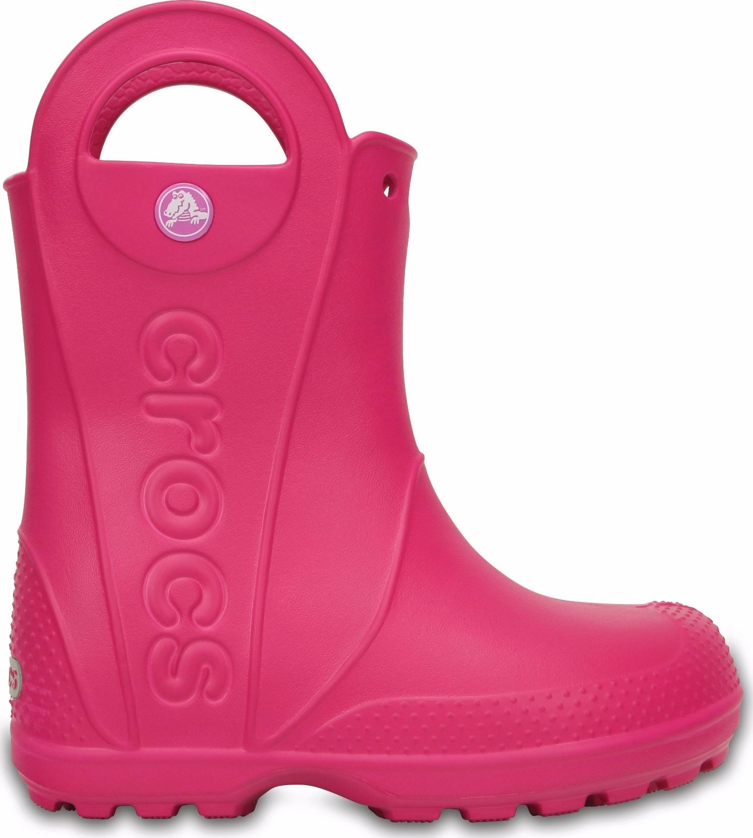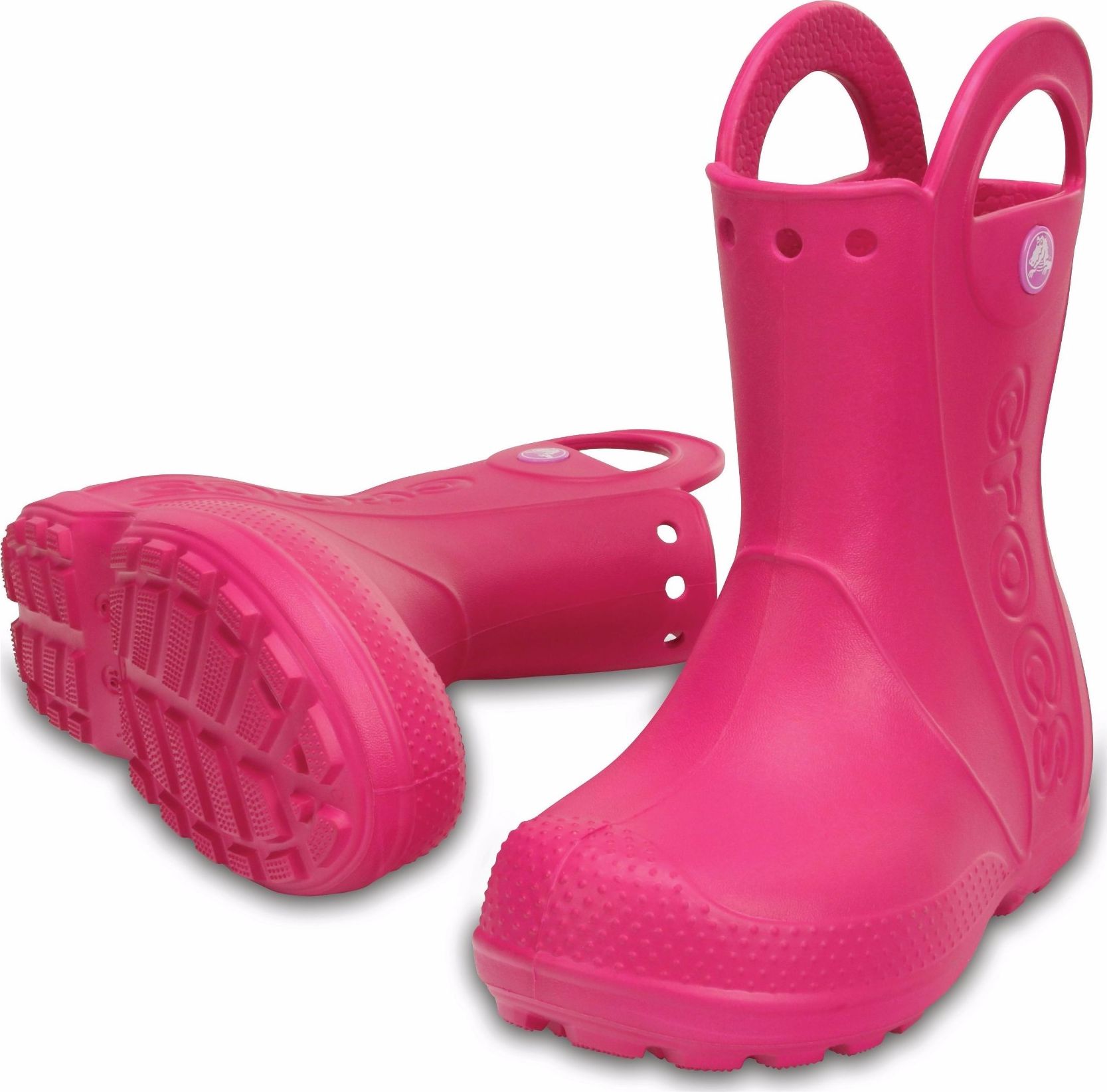Crocs™ Kids' Handle It Rain Boot - leiskite savo mažyliams mėgautis klasikiniu CrocsTM komfortu. Ryškiaspalviai neperšlampami, lietaus batai. Neabejokite, Jūsų vaikų pėdutės išliks sausos visą dieną!
